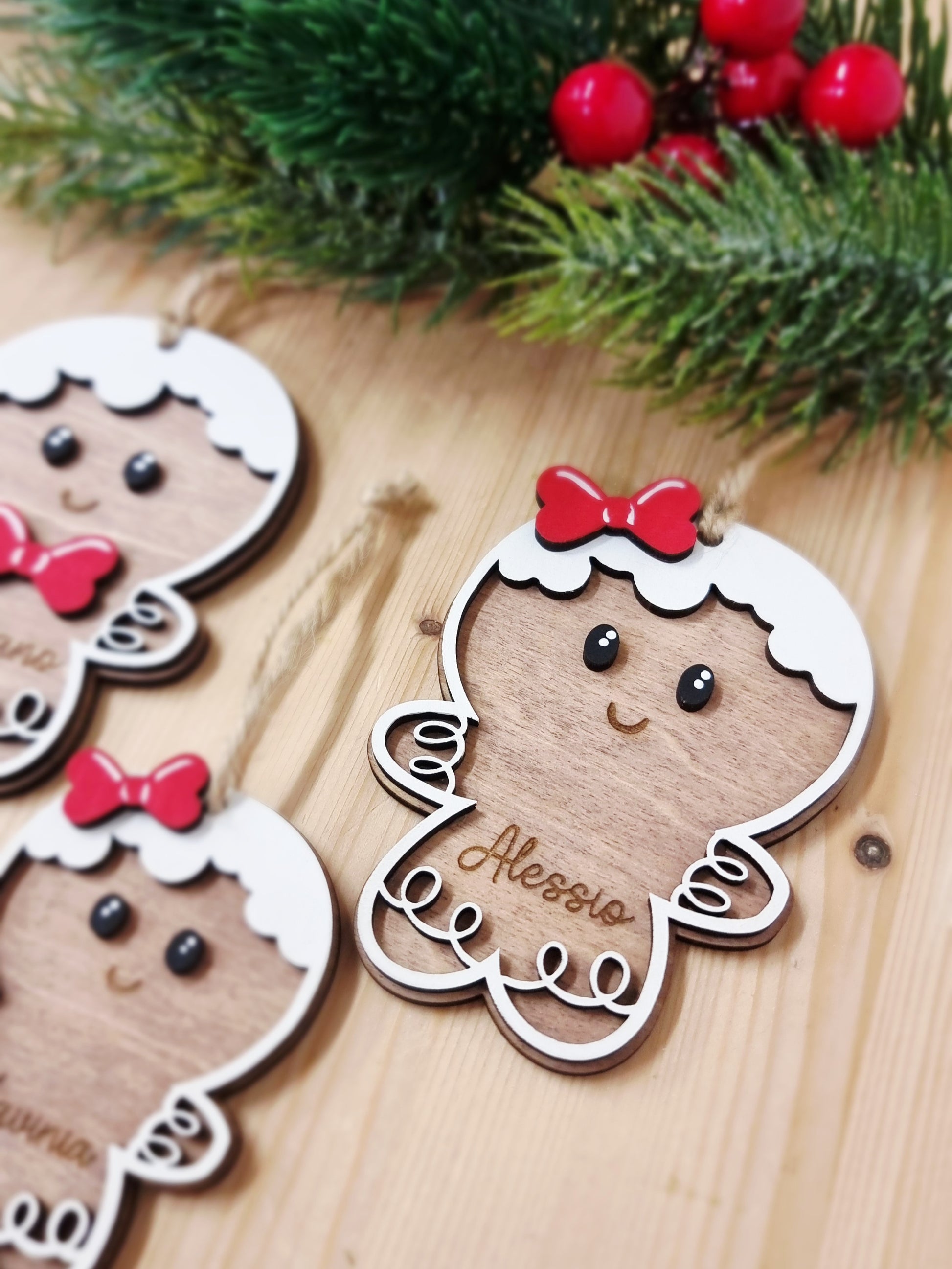 Non dimenticare d'inserire nelle note il nome con cui personalizzare l'addobbo e se volete la versione con papillon o con fiocchetto.
