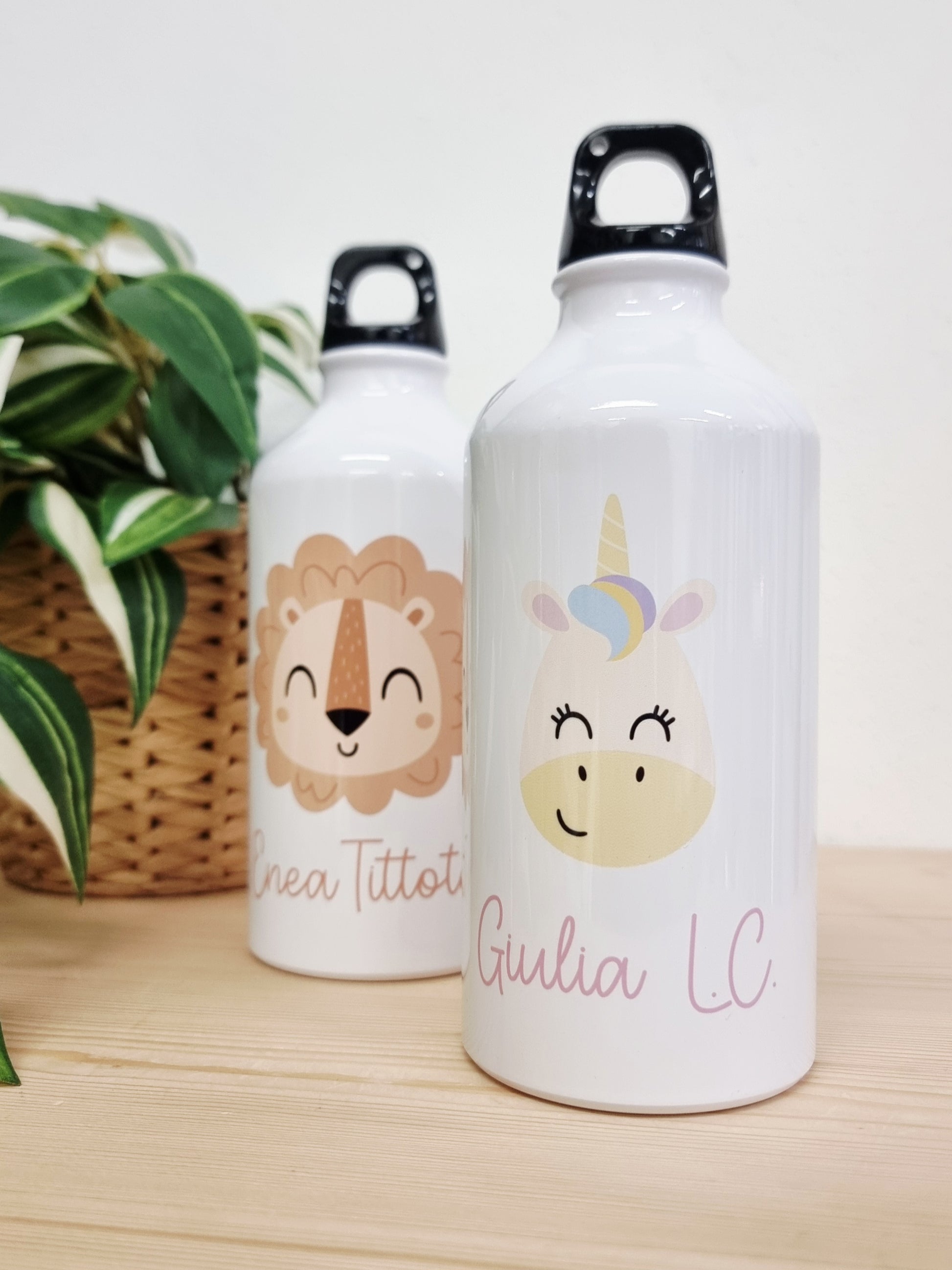 È una borraccia classica in alluminio da 500ml personalizzabile con l'animaletto preferito ed il nome del bimbo.