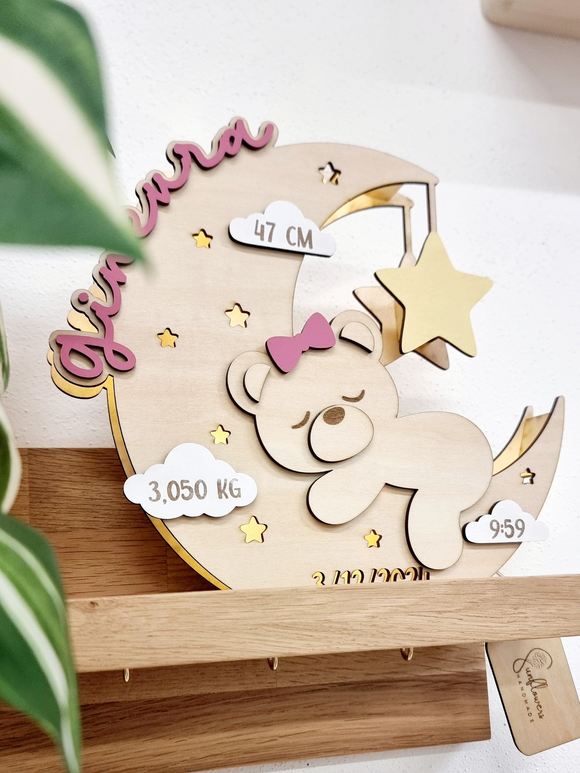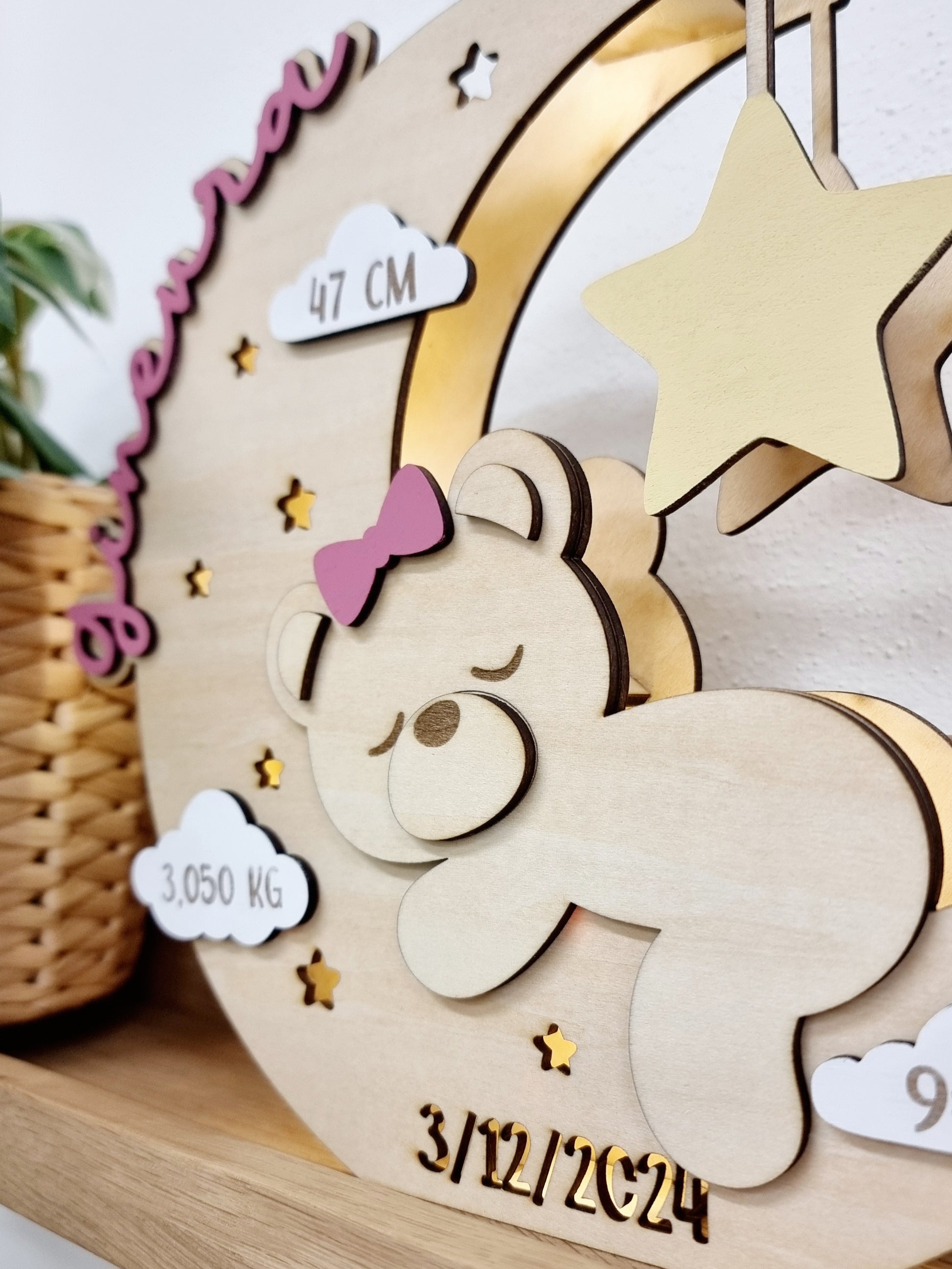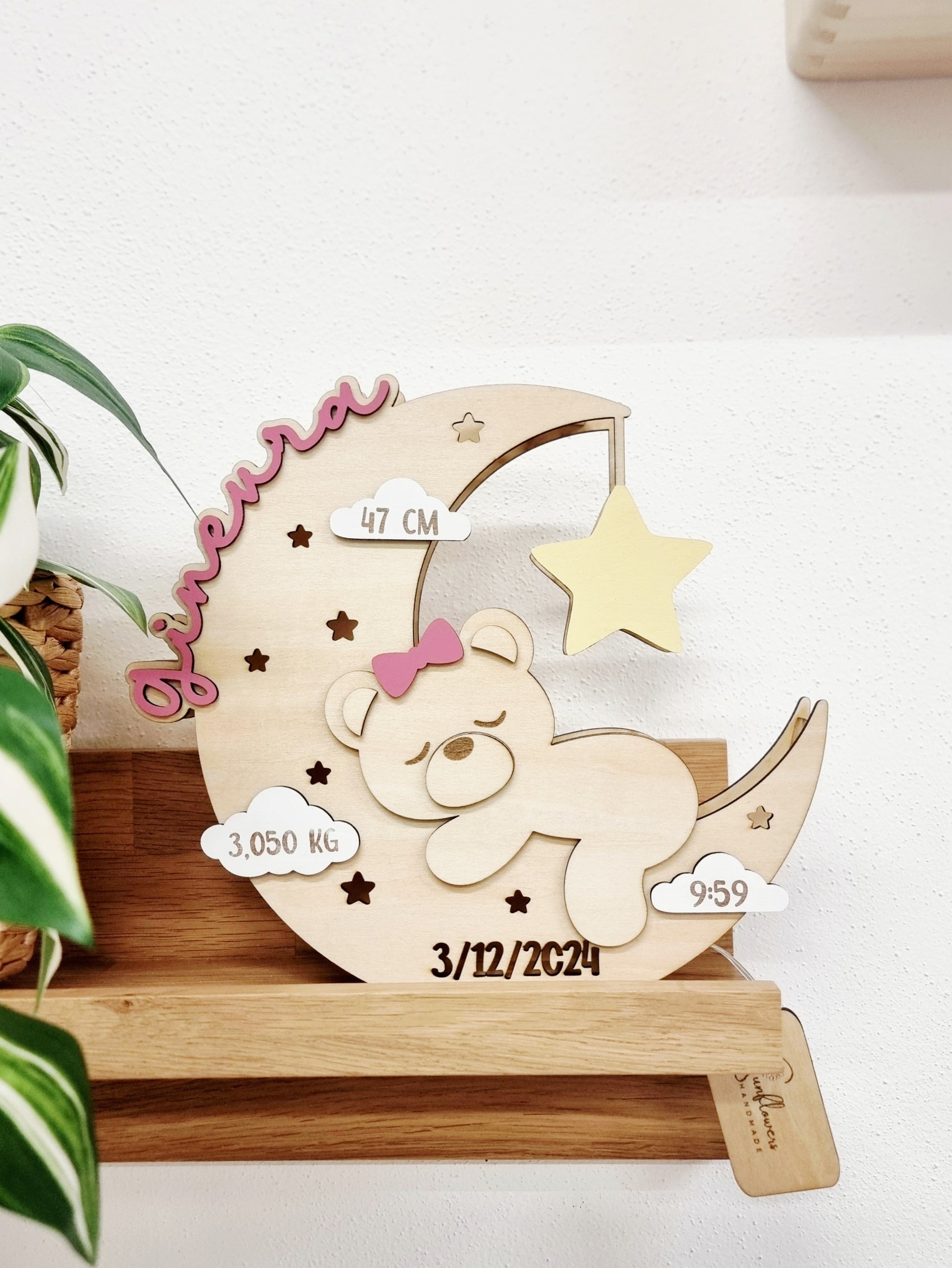 Lampada nascita in legno personalizzata – Orsetto sulla luna