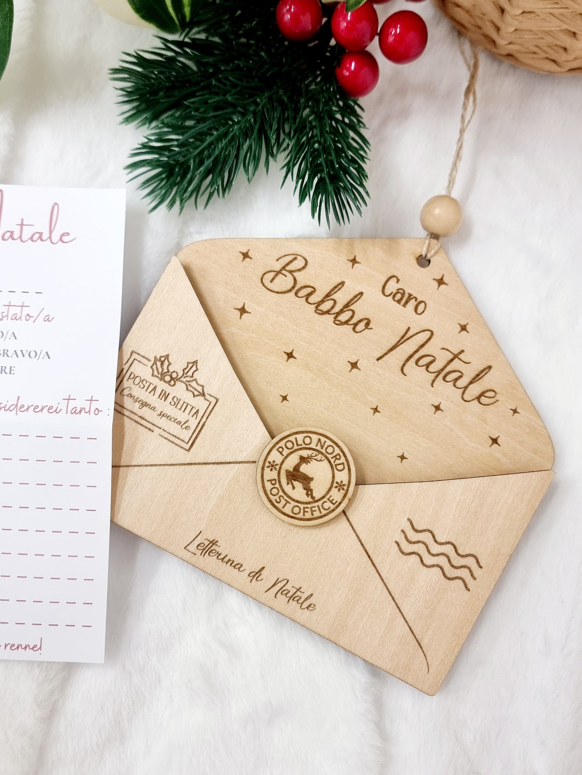 Una busta super resistente in legno è l'idea giusta per contenere questa letterina così importante. Una lettera destinata a volare fino al Polo Nord!