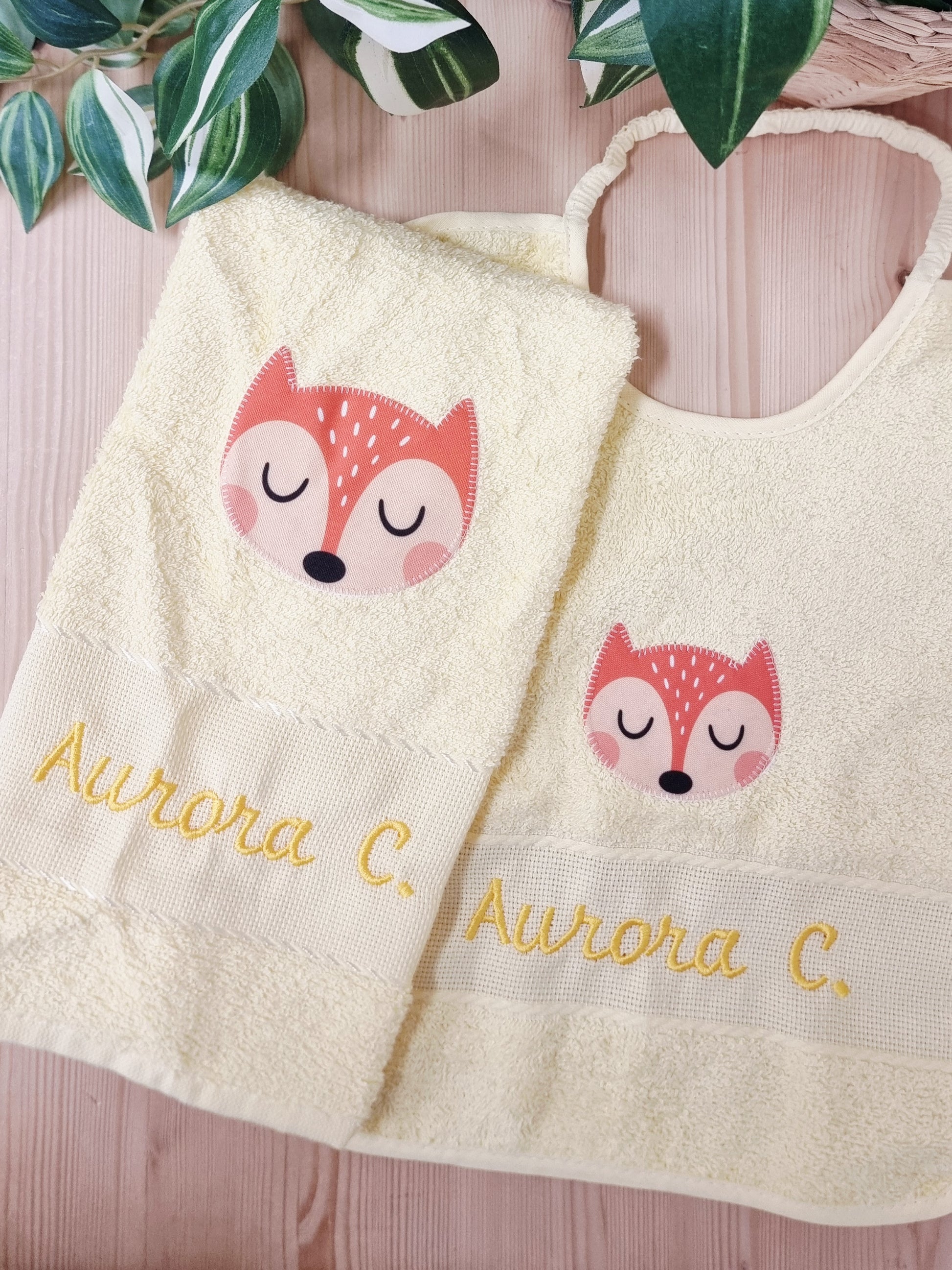 Personalizzabili con il nome ricamato e la grafica stampata su tessuto e successivamente ricamata sul bavaglino.